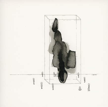 Algunas de las obras de la colección, en la que las personas interactúan con los escenarios que se encuentran preestablecidos. En este proceso, las manchas de tinta están hechas primero, intuitivamente, y trabajadas después para darles sentido. Actúan como contexto y recogen, desde la mirada curiosa, nuestra capacidad para imaginar caminos y mostrar lo invisible.